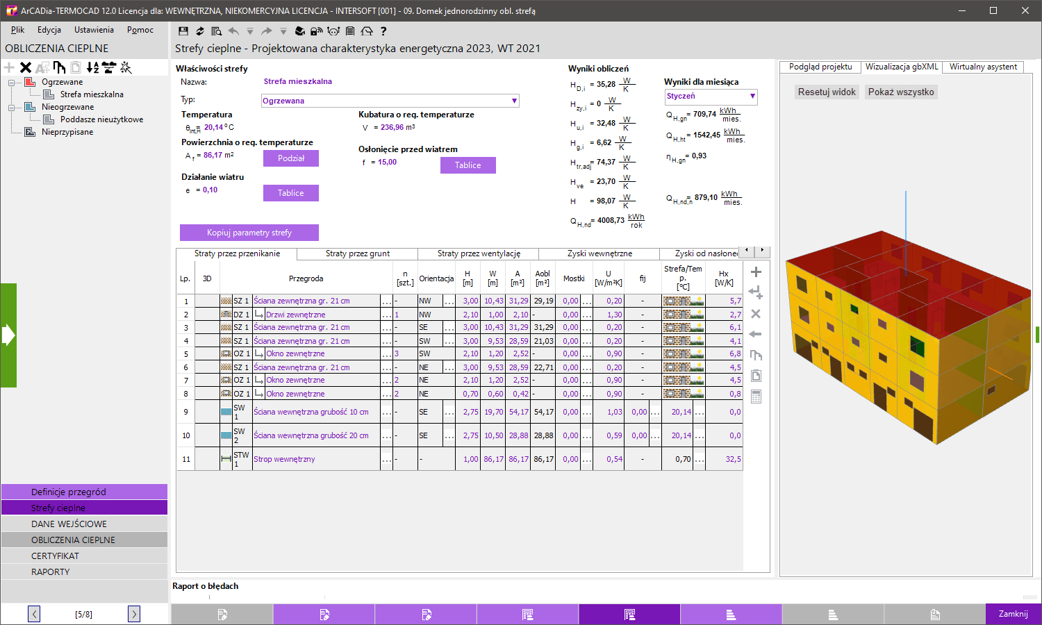 Program w wersji ArCADia-TERMOCAD PCHE 11 umożliwia wykonywanie projektowanej charakterystyki energetycznej, wykonując obliczenia bazujące na rozporządzeniu MIiR z dnia 27 lutego 2015 r.