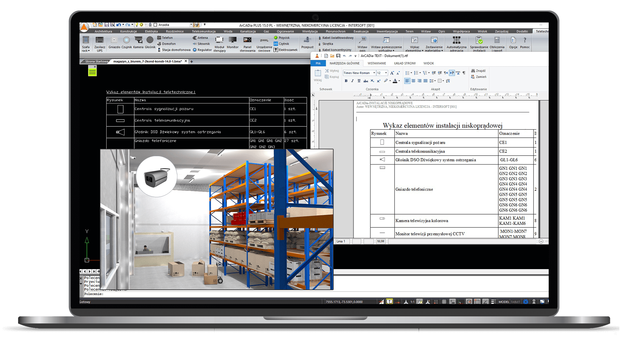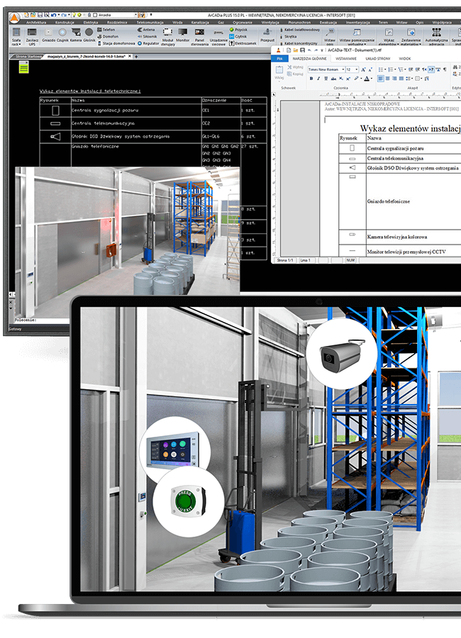 ArCADia-INSTALACJE NISKOPRĄDOWE to nowoczesne narzędzie do tworzenia dokumentacji technicznej wewnętrznych instalacji niskoprądowych w budynku, działające w technologii BIM. Program umożliwia automatyczną adresację urządzeń, generowanie zestawień materiałowych oraz wykonuje obliczenia niezbędne do przygotowania projektu.Jest to nowy program wprowadzony do naszej oferty wraz z ArCAdia BIM 15.